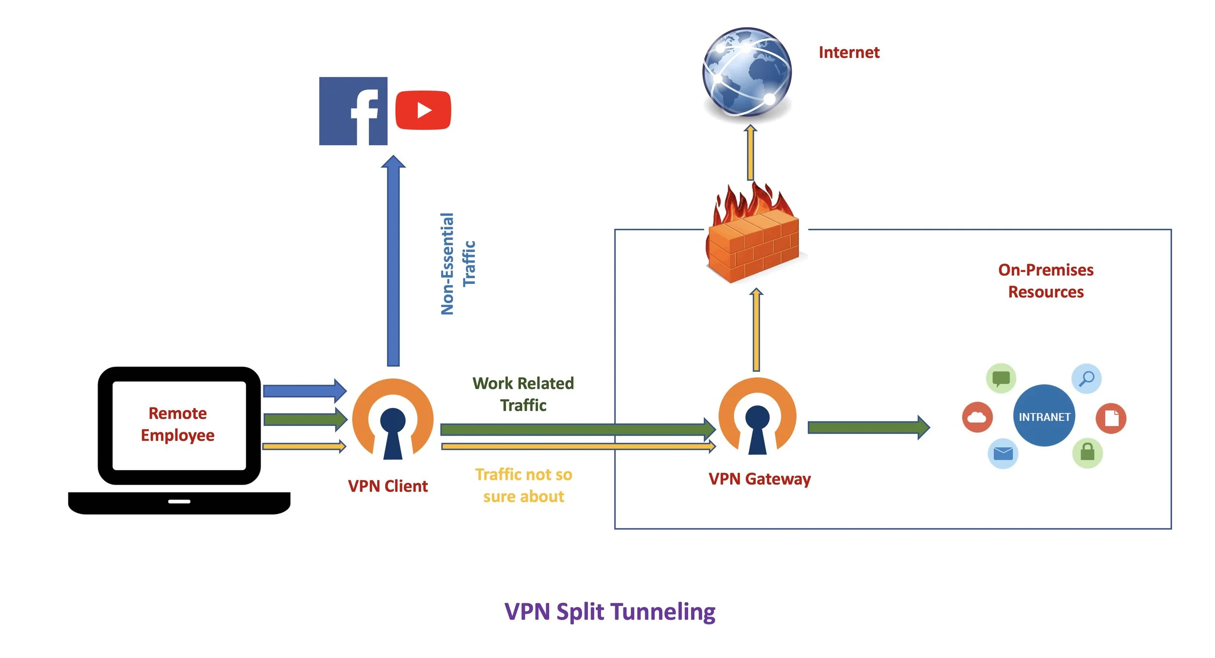 Due to COVID-19 there has been a surge in remote work. This has caused capacity issues for VPN infrastructure of many organizations. In normal VPN deployments all traffic goes through the organization’s VPN infrastructure, be it work related or non-work related. Why not send the internet traffic which doesn't require access to on-premises resources, through a split tunnel. The idea is to send less traffic to VPN infrastructure.
